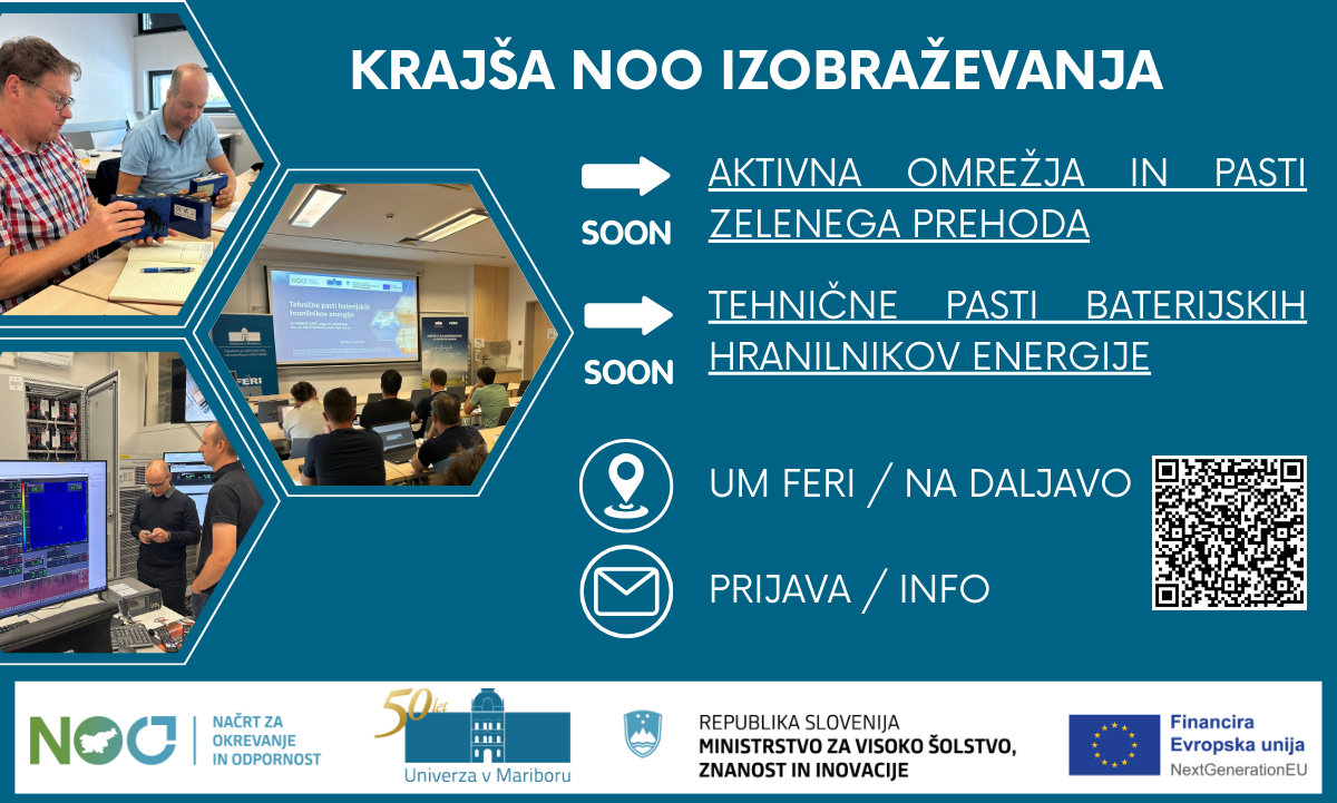 Inštitut za močnostno elektrotehniko, UM FERI je v okviru NOO projekta "Razvoj prožnih učnih pristopov z mikrodokazili za digitalno in zeleno preobrazbo izobraževanja za prehod v Družbo 5.0.", vpet v razvoj in vpeljavo novih pristopov izobraževanj v visokošolski izobraževalni prostor.